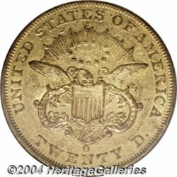 <table><tr><td><table><tr><td>1852-O $20 AU55 PCGS. Considerable prooflike luster survives in the recesses of this extremely popular O-mint Twenty, while the natural green-gold color is combined with hints of reddish patina. Population: 29 in 55, 33 finer (3/04). <BR><BR><B>Important notice:</B> Heritage usually auctions material at the rate of 200-250 lots per hour. On some occasions eBay Live bid software or the Internet may not be able to keep up with the pace of the auction. We recommend placing a realistic absentee bid now as insurance to avoid disappointment. Occasionally the auctioneer may eliminate or reject an eBay Live bid, and the auctioneer may also reopen a lot after the close of the eBay live bidding (usually because we missed an audience bid), and may reject your bid even if it shows you as the winning bidder. By bidding via eBay Live, you agree that Heritage may award the lot to another bidder at its sole discretion under the circumstances described above or any other reasonable circumstances. Since eBay bids are not shown to us until we open the lot on the floor, we treat those bids just like floor bids. In most cases the floor responds before the eBay bid is presented to us, due to Internet lag time, so for consistency we have made it a policy that floor bids are always considered first over tie eBay live bids. Also please note that all Heritage lots purchased through eBay Live carry a 20% Buyer's Premium. Please make sure you read the Terms and Conditions before you bid. <BR><BR><B>IMPORTANT ANNOUNCEMENT ABOUT RESERVES:</B> Heritage now divulges all reserves on its web site 7 days before every auction. If you want to know whether the reserve on this lot has been met, and if not, what the reserve amount is, please visit this lot page on the HeritageCoin.com web site, or email: bid@HeritageGalleries.com </span></font></td></tr></table></td></tr></table>