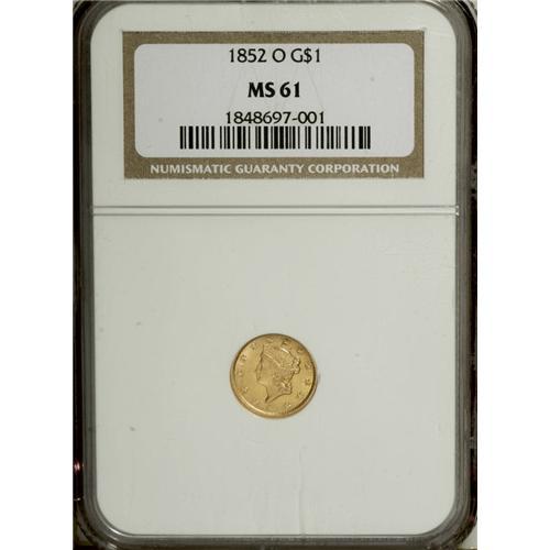 1852-O G$1 MS61 NGC. Generally well struck, even if a