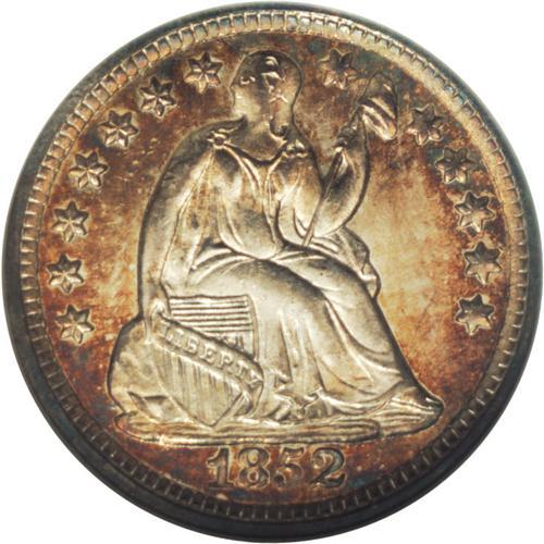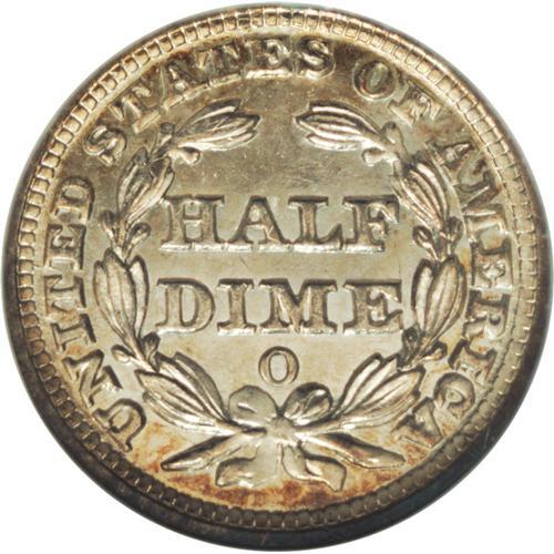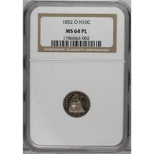<B>1852-O H10C MS64 Prooflike NGC.</B></I> Orange-gold and fire-red encroach upon the frosty seated Liberty. The reverse has russet borders and an untoned center. Liberty's head is soft, but the overall strike is good. A few marks on the right obverse field are consistent with the grade. The present piece is the only 1852-O half dime certified by NGC as Prooflike (2/07).<BR><BR><b>Shipping:</b> Coins & Currency (<a target="_blank" href="http://www.heritageauctions.com/common/shipping.php">view shipping information</a>)