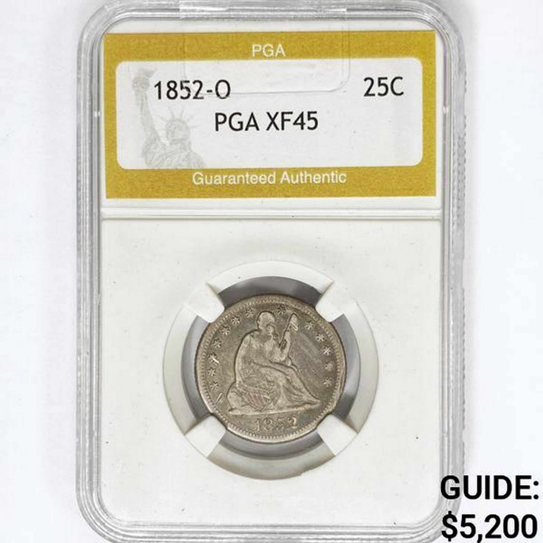 1852-O Seated Liberty Quarter PGA XF45