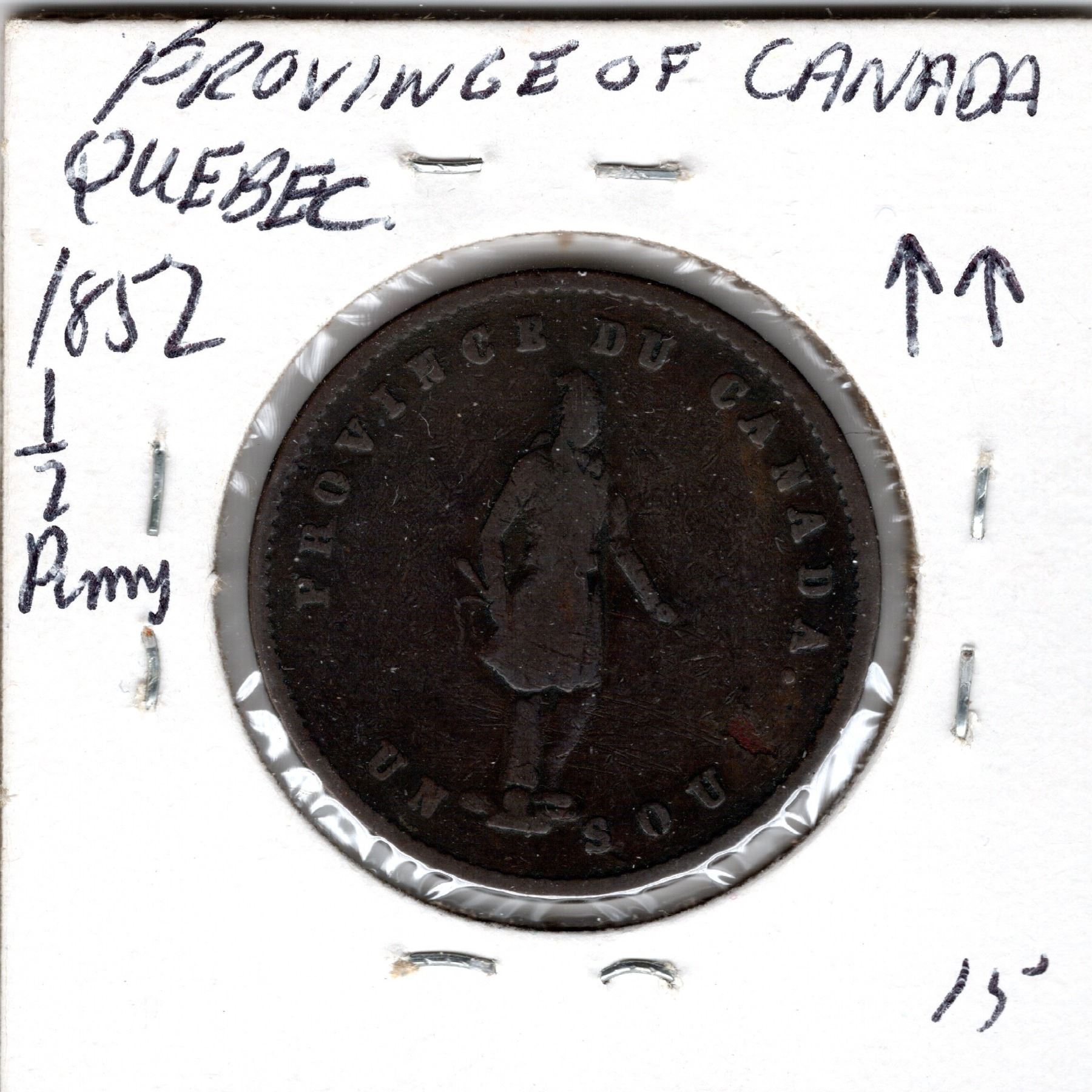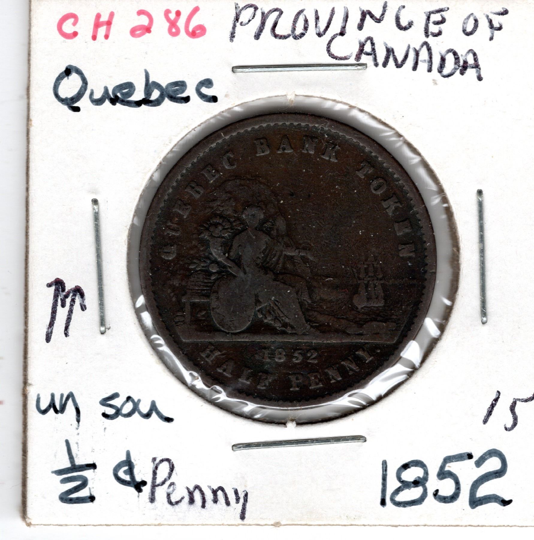 1852, QUEBEC PROVINCE OF CANADA, HALF PENNY TOKEN