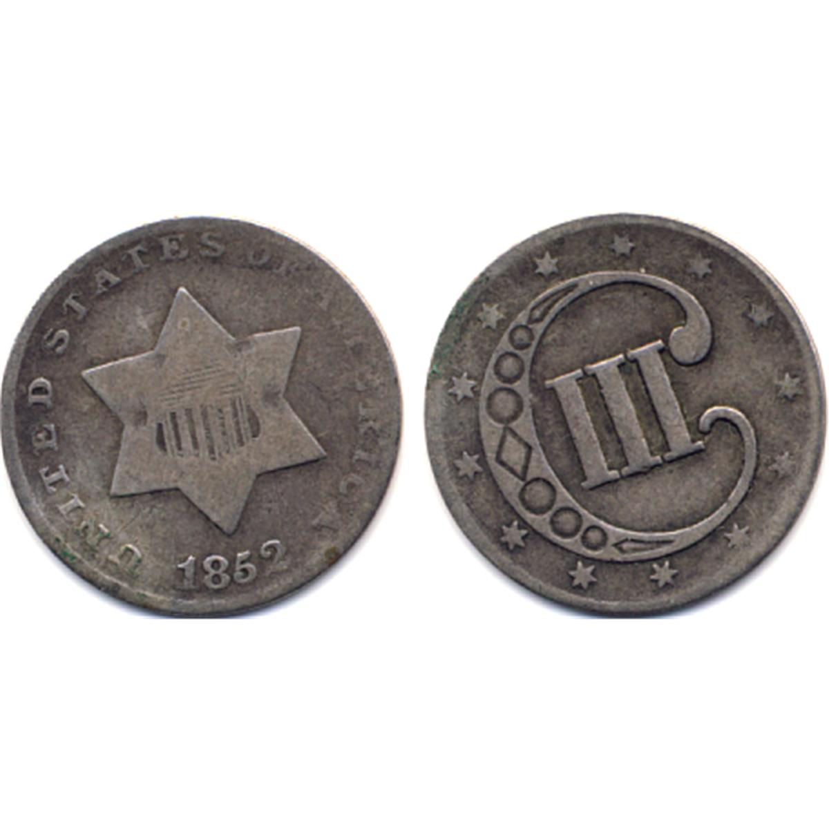 1852 SILVER 3 CENT-CIRC