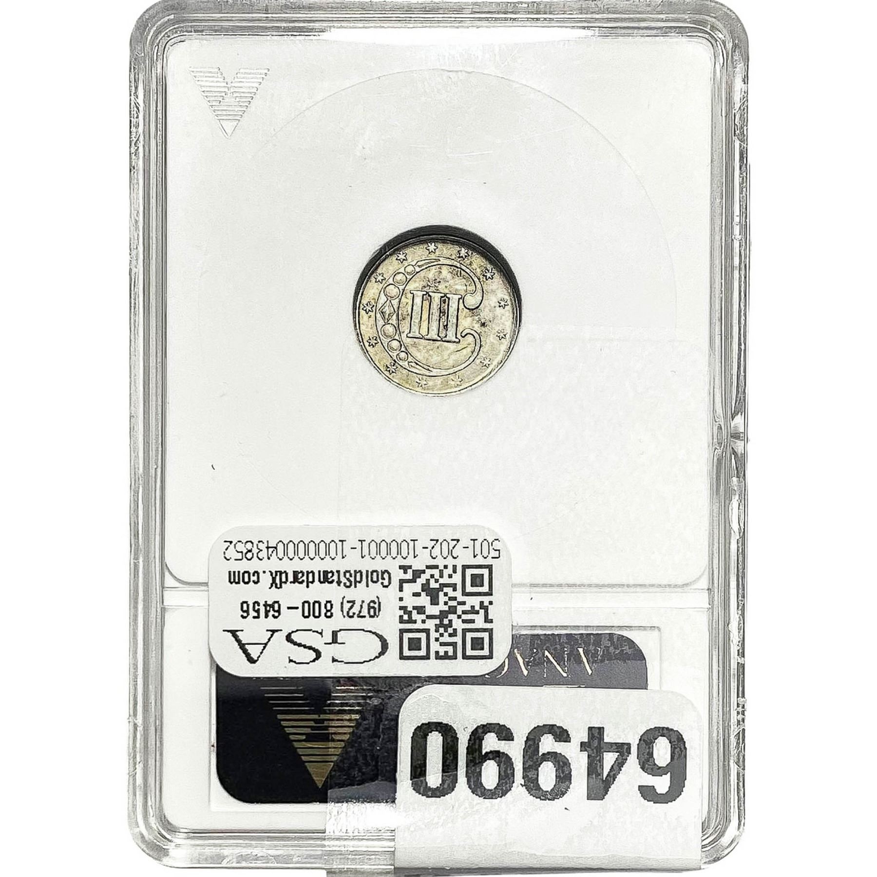 c. THREE (3) DAY RETURN POLICY. Certified Coin and Uncertified and Certified Currency lots paid for within seven (7) days of the auction or “Buy it Now” salemay be sold with three (3) day return privileges (only upon written pre-approval by GSA) unless otherwise noted in the description as “Sold As Is / No Return”. You may return Product(s) under the following limited conditions with written pre-approval from GSA: (i) within three (3) days of receipt of the Product(s), you must first notify GSA by email (at info@bidgoldstandard.com) and telephone (972-800-6456), obtain written pre-approval via email, and immediately ship the return Product(s) in their original condition, fully insured, and housed in their original holder or packaging, to the attention of “GOLD STANDARD AUCTIONS, LLC – RETURNS, 13859 Diplomat Drive, #150, Dallas, TX 75234.” Said return Product(s) must be in GSA’s possession, custody and control within thirty (30) days after the conclusion of the Product(s) auction or such return privileges are revoked without further notice and the late Product will be shipped back to the Bidder at his/her/its sole expense. A non-negotiable restocking fee of fifteen percent (15%) of the purchase price ($10.00 per Product/lot minimum) will be deducted from the refund for each returned Product (or billed directly to the Bidder). Postage and handling, customs, and other fees are not refunded. After the three-day period (from Bidder’s receipt), no Product(s) may be returned for any reason. Late remittance for purchases revokes all return privileges.