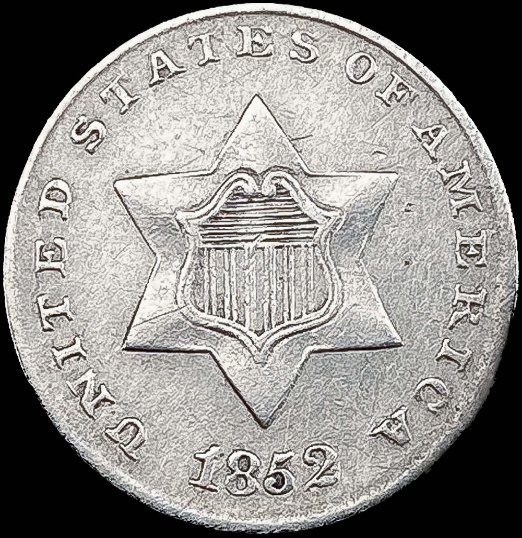1852 Silver Three Cent CLOSELY UNCIRCULATED