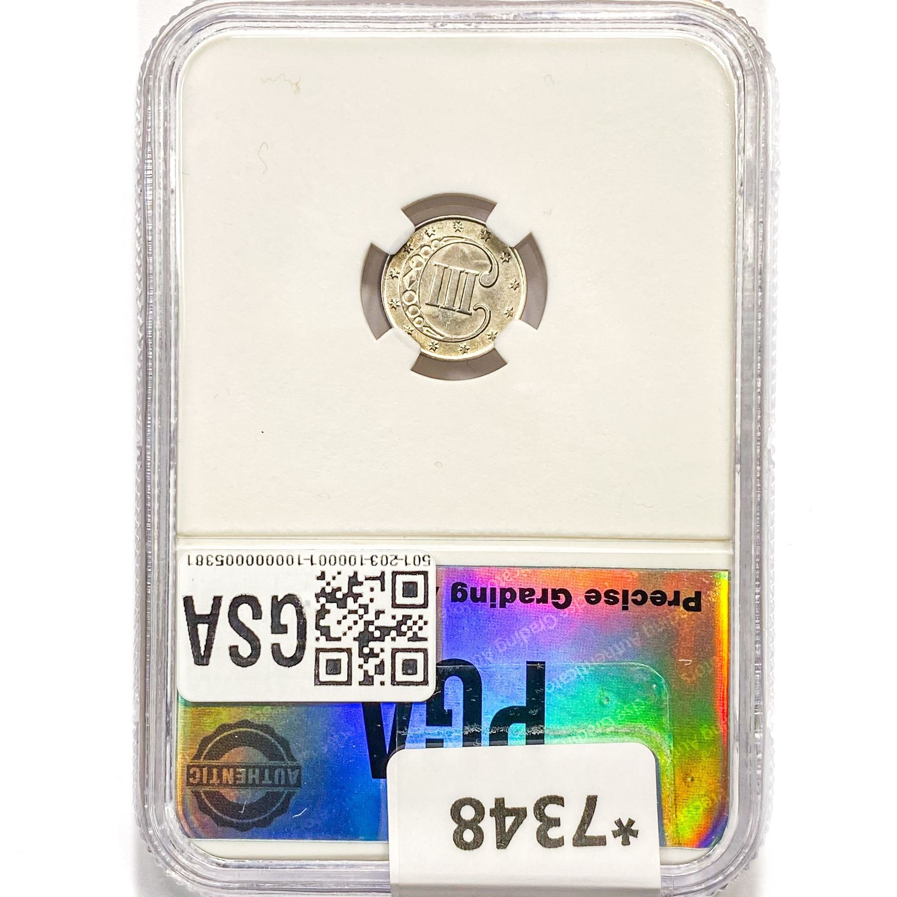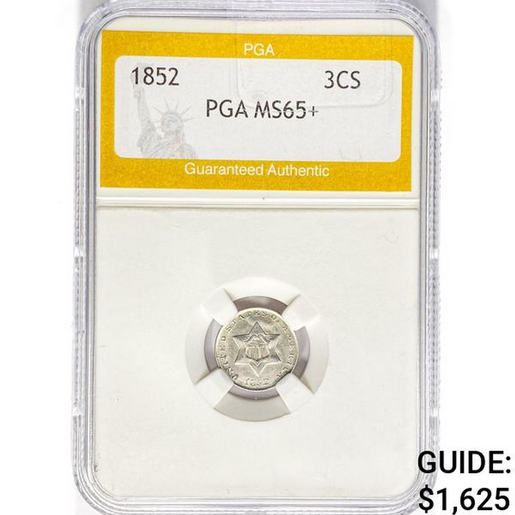 1852 Silver Three Cent PGA MS65+