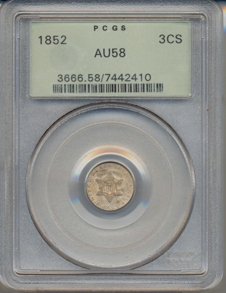 One 1852 Star Three Cent Coin PCGS AU58.