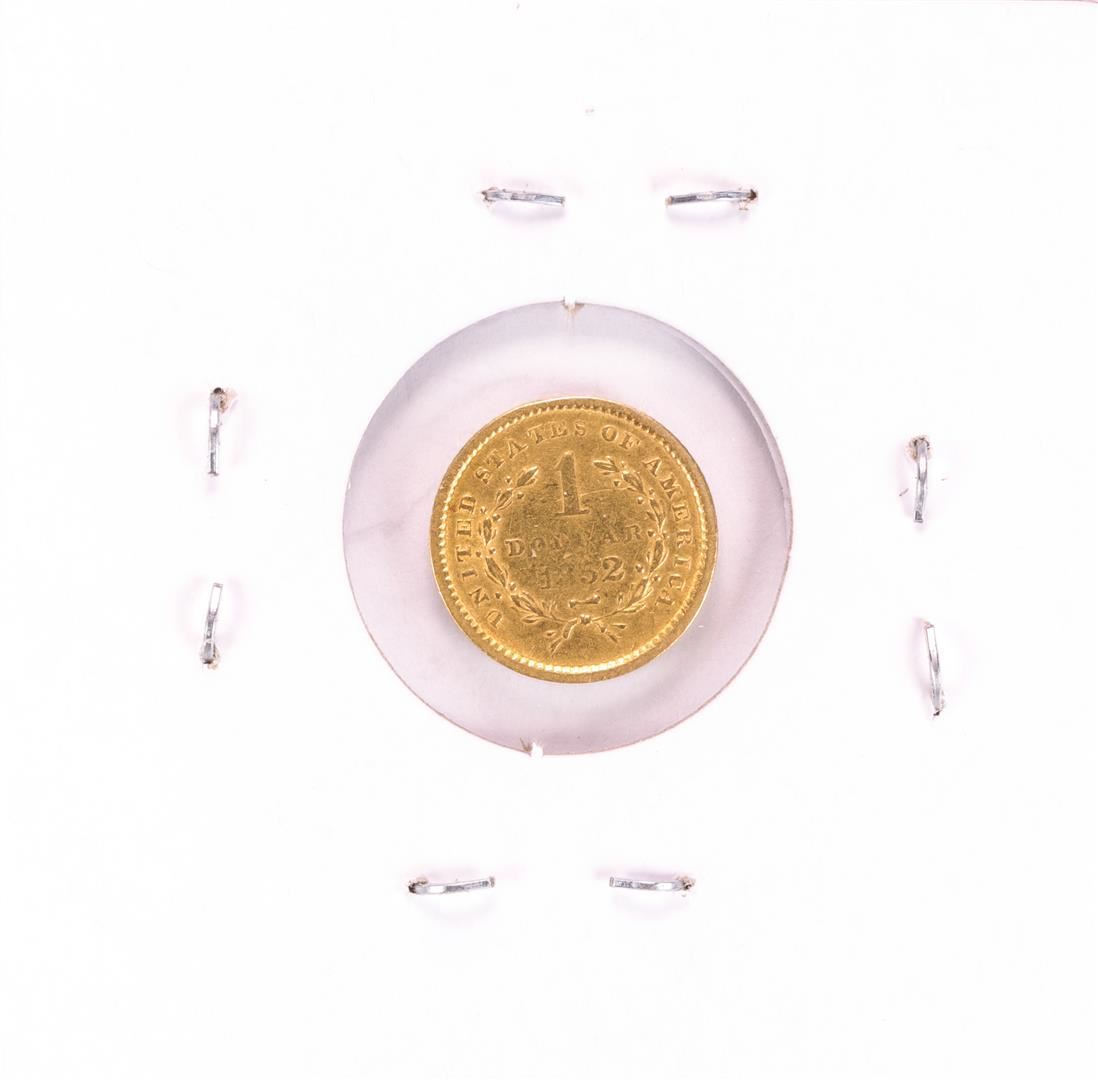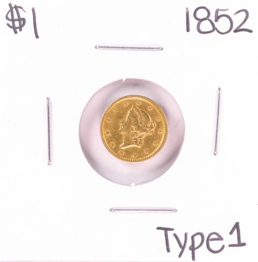 One 1852 Type 1 $1 Liberty Head Gold Dollar Coin.