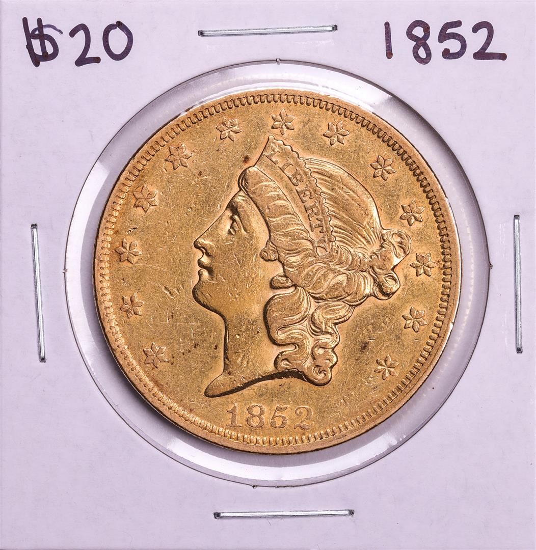 One 1852 Type 1 $20 Liberty Head Double Eagle Gold Coin.