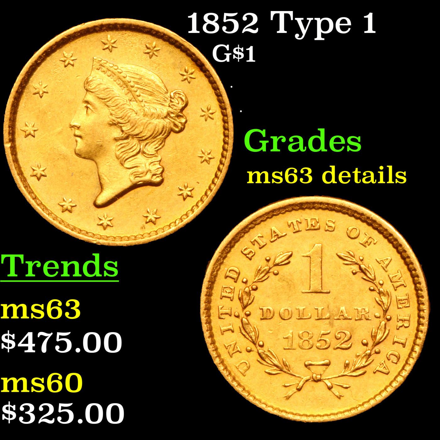 1852 Type 1 Gold Dollar $1 Grades unc details.