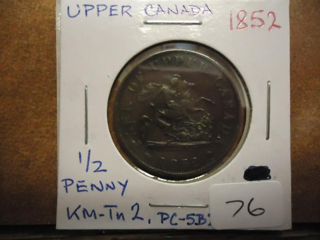 1852 UPPER CANADA BANK TOKEN HALF PENNY (EF)