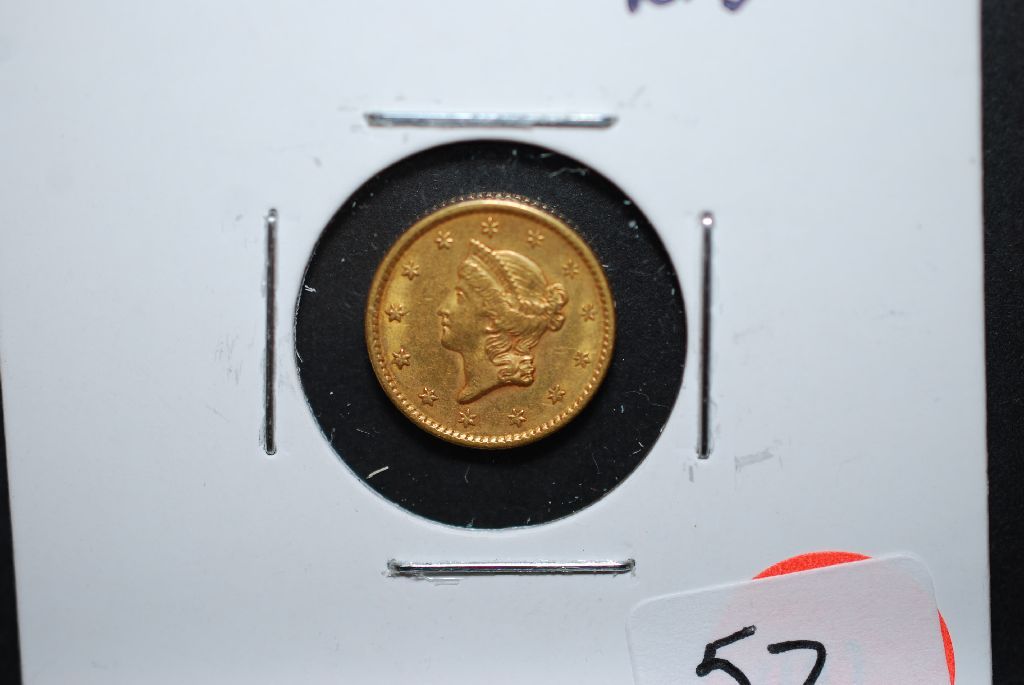 1852 US Liberty $1 Gold Coin; XF; EST. $150-200