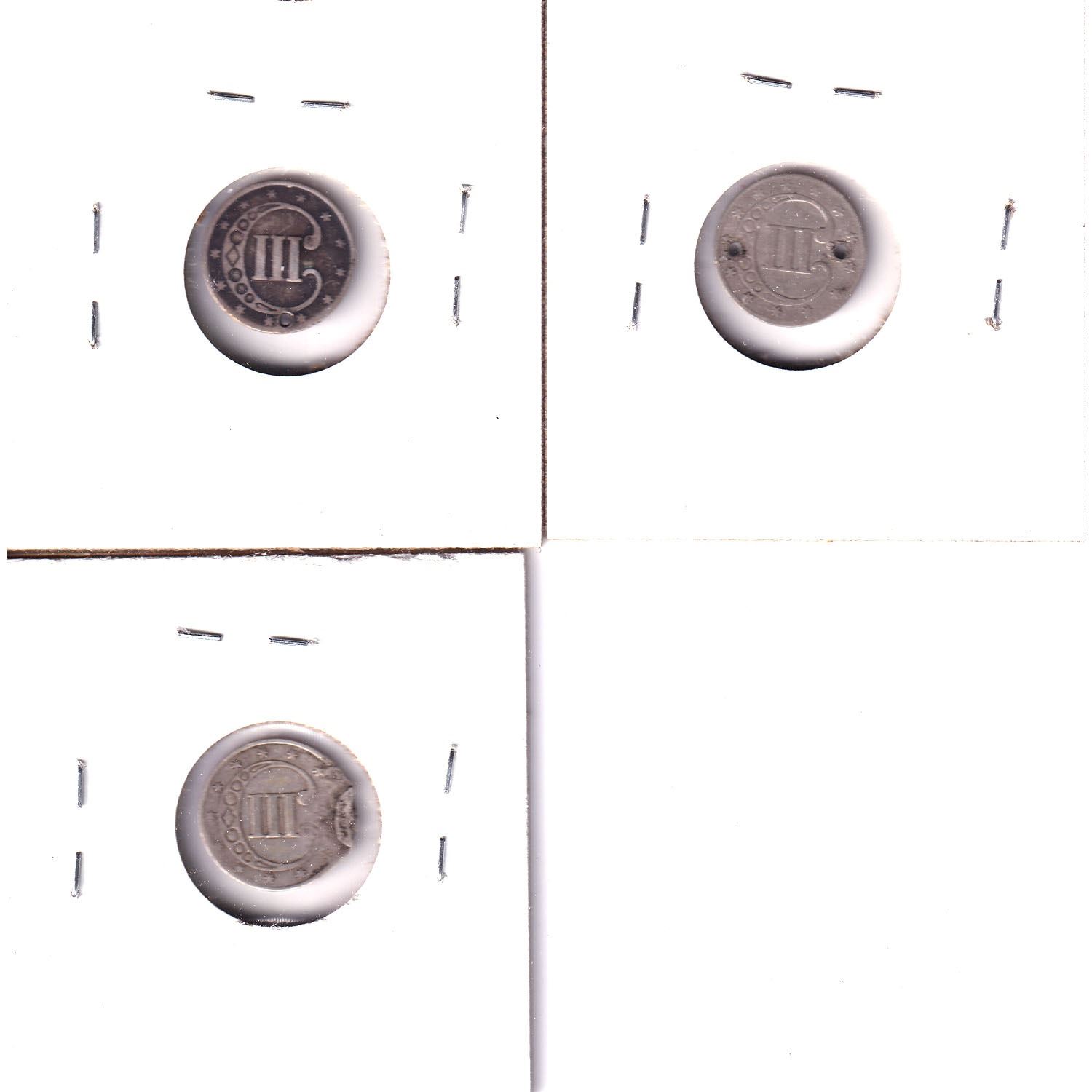 1852 USA 3-cent VG (hole), 1852 USA 3-cent F (holes) & 1853 USA 3-cent VF (impaired). 3pcs