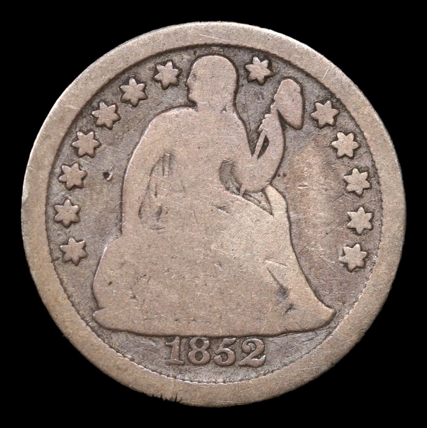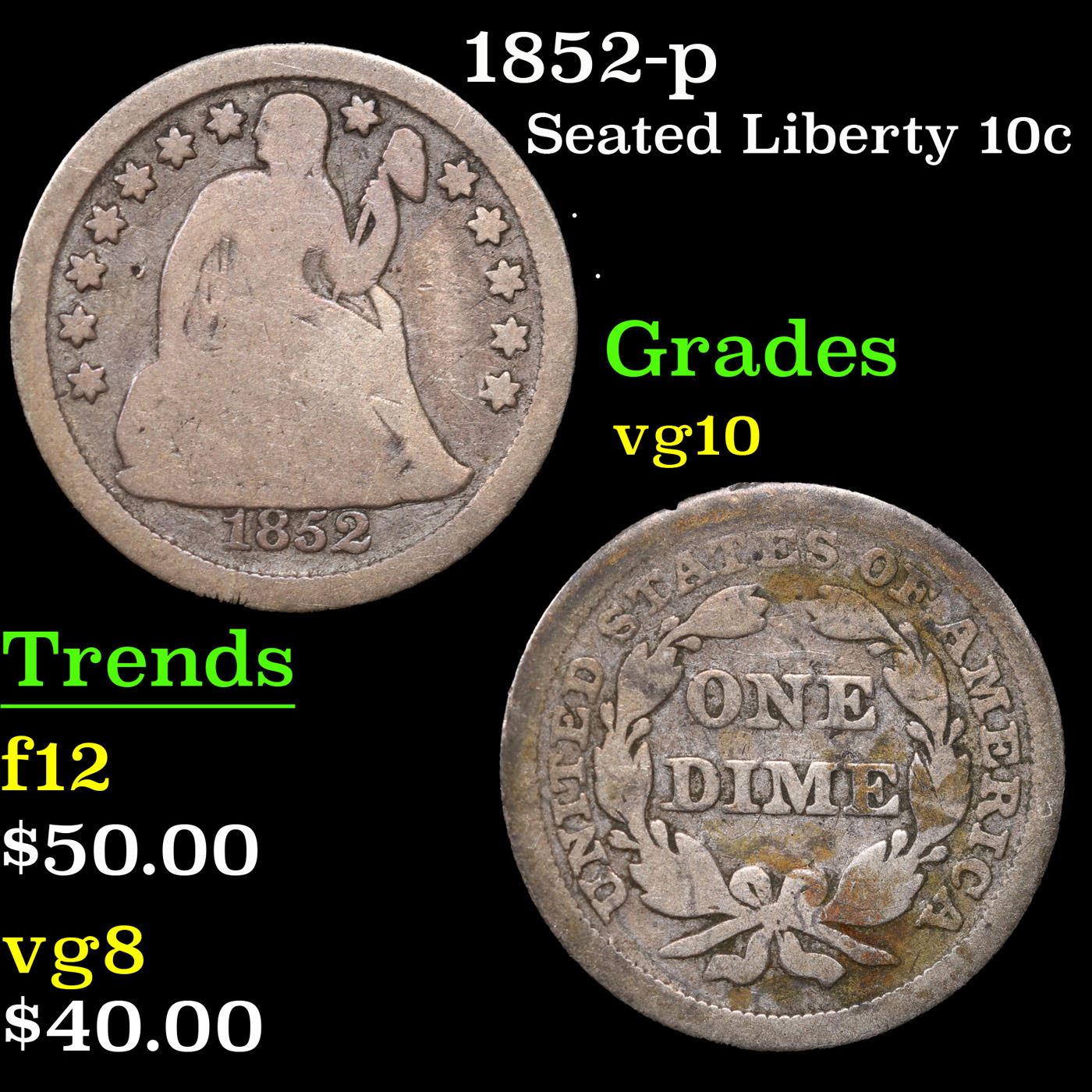 1852-p Seated Liberty Dime 10c Grades vg+.