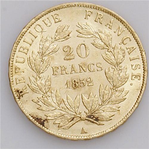 1852A gold 20 Francs pair as follows: KM774, 1 AU and 1 Napoleon III 1852A gold 20 Francs pair as fo