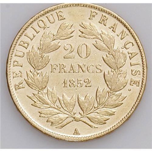 <B>Napoleon III 1852A gold 20 Francs pair including:</B></I> KM774, XF and XF-AU.