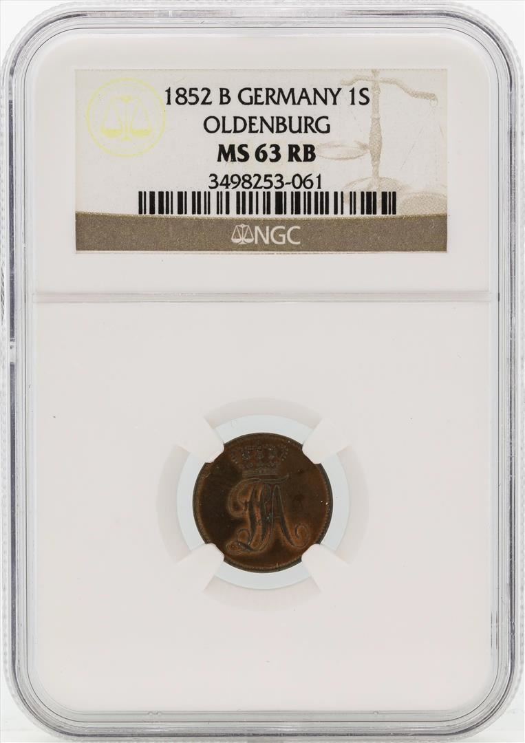 One 1852B Germany Schwaren Coin BGC MS63 RB.