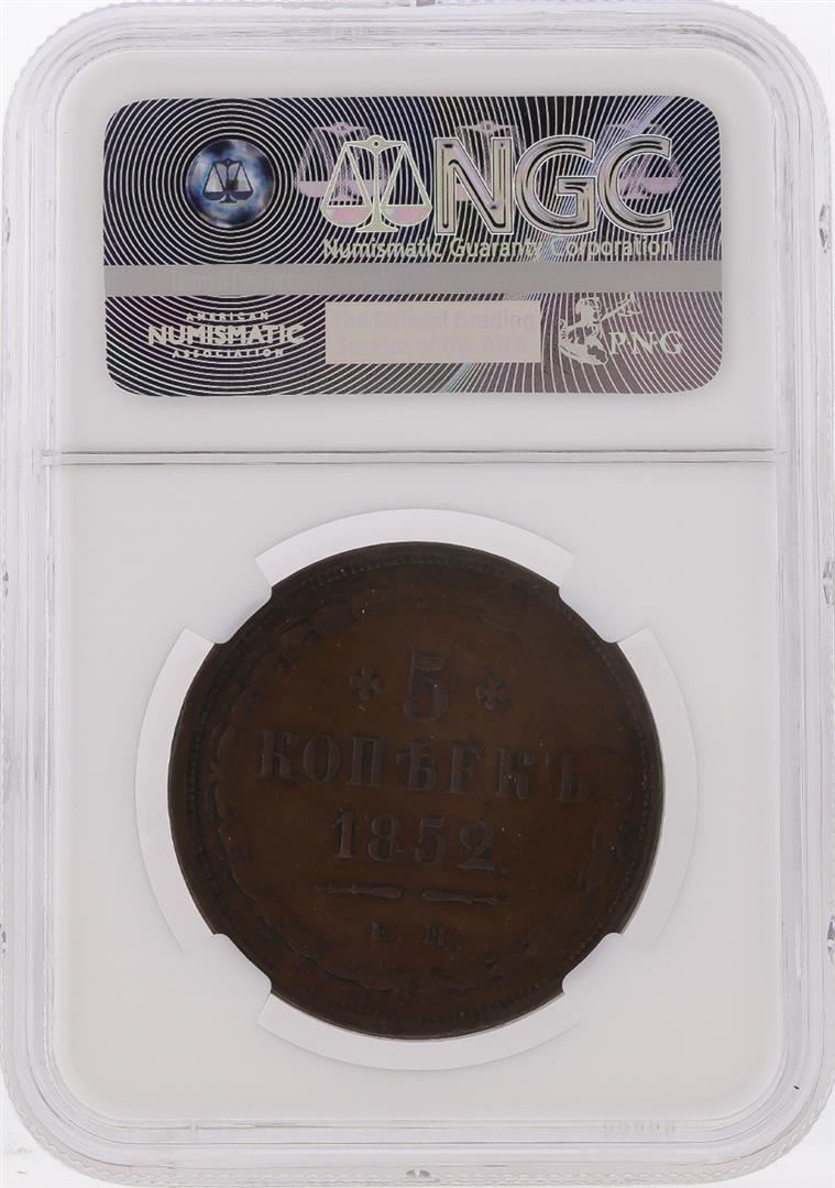 One 1852EM Russia 5 Kopeks Copper Coin NGC Graded XF45 BN. NGC Certified.