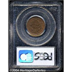 <B>1853<1/2 C> MS64 Brown PCGS.</B></I> B-1, C-1, R.1. A bold chocolate-brown representative that has glimpses of the original orange color in protected areas. Nearly pristine except for a faint pinscratch above the CE in CENT. <BR><BR><B>Important notice:</B> Heritage usually auctions material at the rate of 200-250 lots per hour. On some occasions eBay Live bid software or the Internet may not be able to keep up with the pace of the auction. We recommend placing a realistic absentee bid now as insurance to avoid disappointment. Occasionally the auctioneer may eliminate or reject an eBay Live bid, and the auctioneer may also reopen a lot after the close of the eBay live bidding (usually because we missed an audience bid), and may reject your bid even if it shows you as the winning bidder. By bidding via eBay Live, you agree that Heritage may award the lot to another bidder at its sole discretion under the circumstances described above or any other reasonable circumstances. Since eBay bids are not shown to us until we open the lot on the floor, we treat those bids just like floor bids. In most cases the floor responds before the eBay bid is presented to us, due to Internet lag time, so for consistency we have made it a policy that floor bids are always considered first over tie eBay live bids. Also please note that all Heritage lots purchased through eBay Live carry a 20% Buyer's Premium. Please make sure you read the Terms and Conditions before you bid.