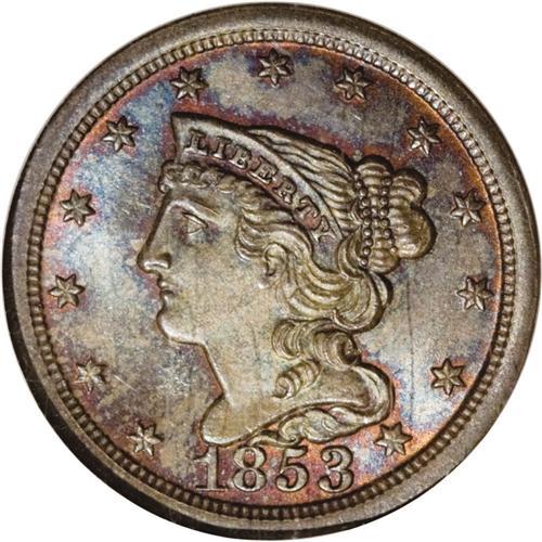1853 1/2 C MS67 Brown NGC. C-1, B-1, R.1. Beautiful ic