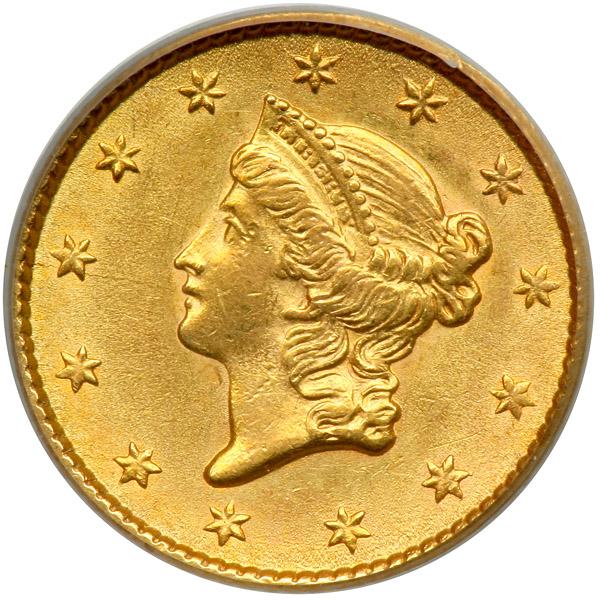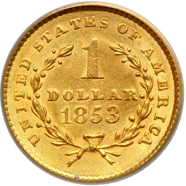 1853 $1 Gold Liberty. NGC graded MS-62 (PCGS # 7521) .