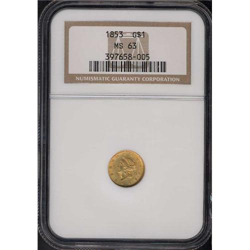 Clean, original coin which has the look of a higher grade. Bright, original luster with just the faintest of hairlines. Bid is $930 and trends $1500.