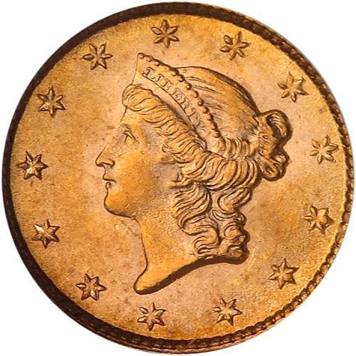 Fully Struck, the hair and stars are crisp and bold. satin yellow gold color. Only twenty coins certified as finer between the two services. Bid is $6900 and trends $12,000.