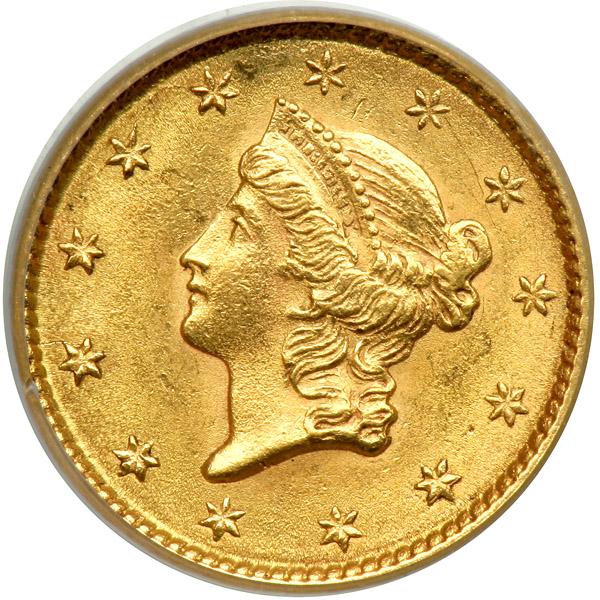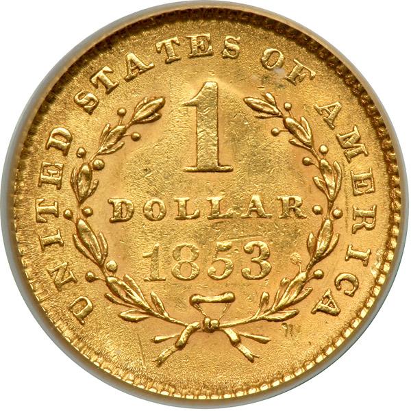 1853 $1 Gold Liberty. PCGS graded MS-62. CAC Approved (PCGS # 7521) .