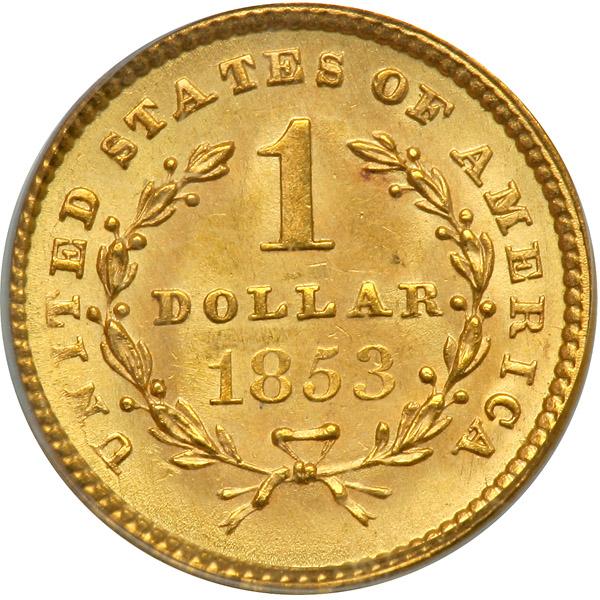 1853. PCGS graded MS-64 CAC Aapproved. A nice bold strike glistening with luster (PCGS # 7521) .