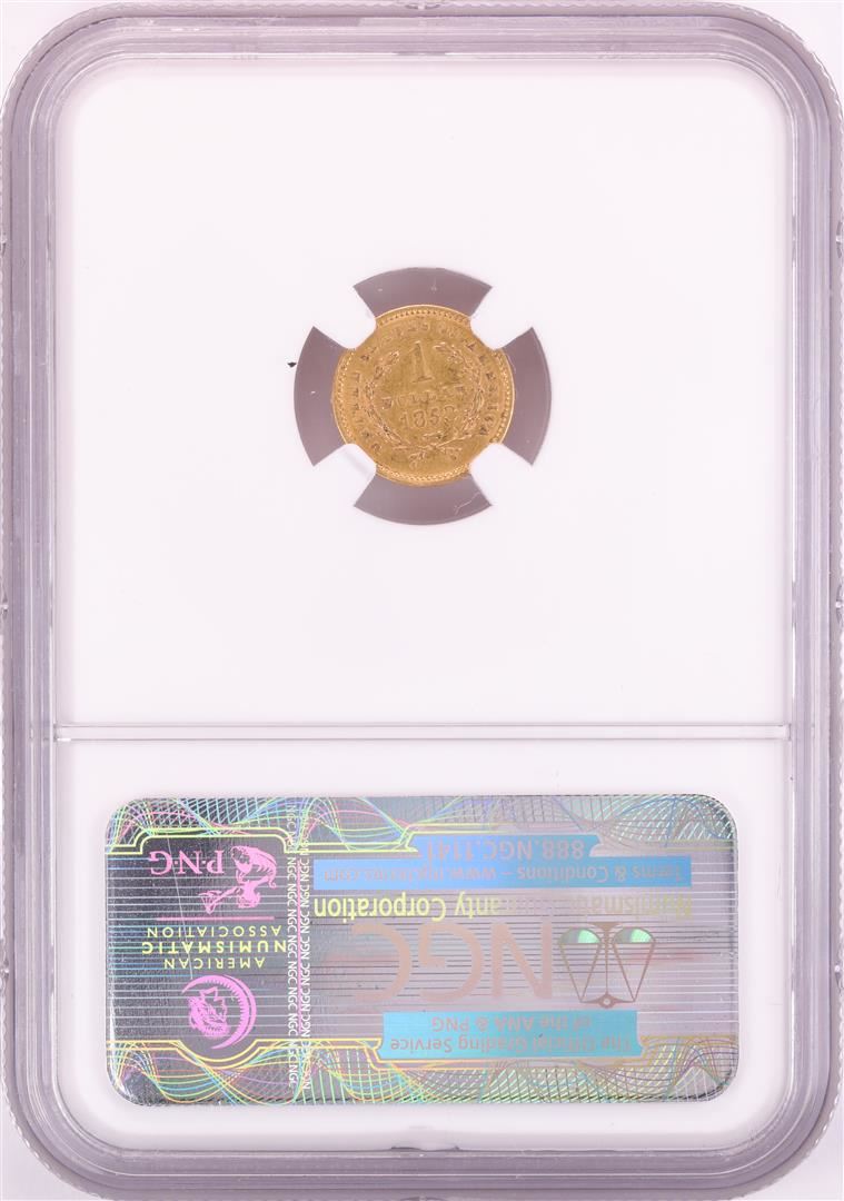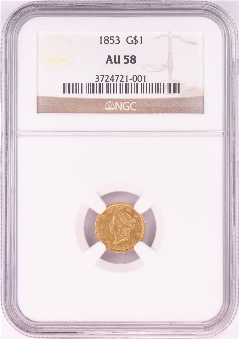 One 1853 $1 Liberty Head Gold Coin NGC AU58. NGC Certified.