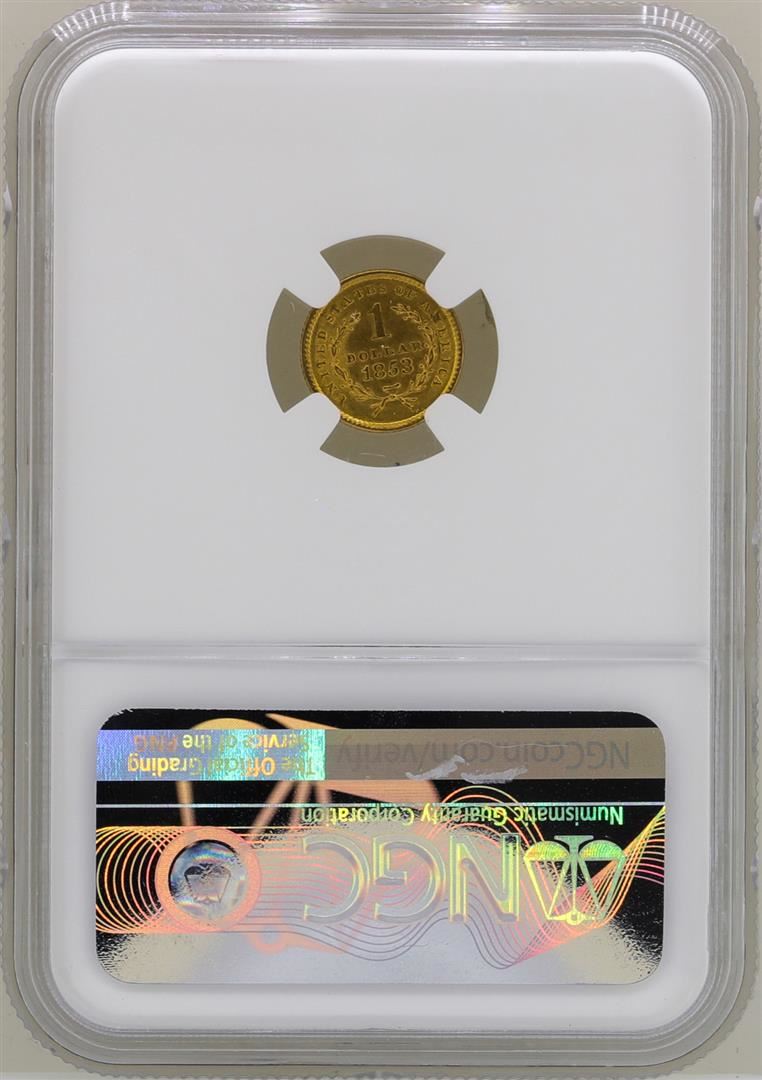 One 1853 $1 Liberty Head Gold Dollar Coin NGC MS61. NGC Certified.