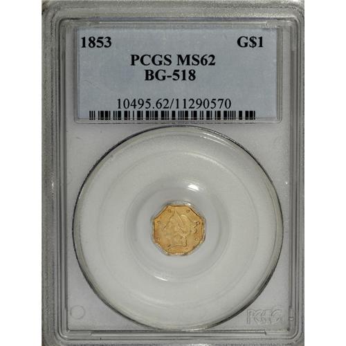 1853 $1 Liberty Octagonal 1 Dollar, BG-518, R.5, MS62