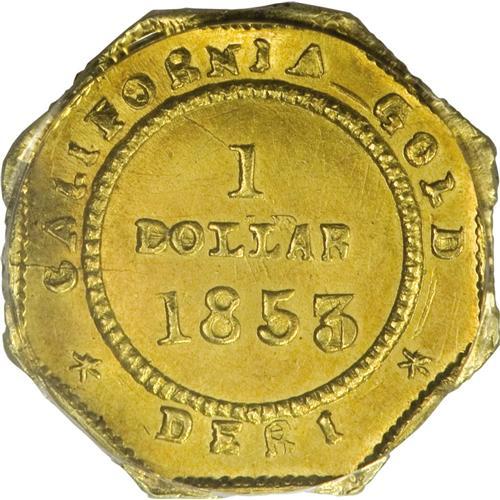 1853 $1 Liberty Octagonal 1 Dollar, BG-518, R.5, MS62