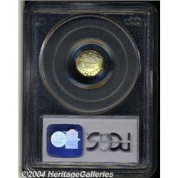 <B>1853<$1> Liberty Octagonal 1 Dollar, BG-519, Low R.4, MS62 PCGS.</B></I> A radiant and well struck piece with attractive prooflike surfaces and wisps of violet color on the obverse. Population: 21 in 62, 6 finer (3/04). <BR><BR><B>Important notice:</B> Heritage usually auctions material at the rate of 200-250 lots per hour. On some occasions eBay Live bid software or the Internet may not be able to keep up with the pace of the auction. We recommend placing a realistic absentee bid now as insurance to avoid disappointment. Occasionally the auctioneer may eliminate or reject an eBay Live bid, and the auctioneer may also reopen a lot after the close of the eBay live bidding (usually because we missed an audience bid), and may reject your bid even if it shows you as the winning bidder. By bidding via eBay Live, you agree that Heritage may award the lot to another bidder at its sole discretion under the circumstances described above or any other reasonable circumstances. Since eBay bids are not shown to us until we open the lot on the floor, we treat those bids just like floor bids. In most cases the floor responds before the eBay bid is presented to us, due to Internet lag time, so for consistency we have made it a policy that floor bids are always considered first over tie eBay live bids. Also please note that all Heritage lots purchased through eBay Live carry a 20% Buyer's Premium. Please make sure you read the Terms and Conditions before you bid.