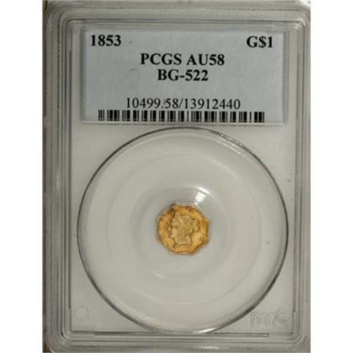 1853 $1 Liberty Octagonal 1 Dollar, BG-522, High