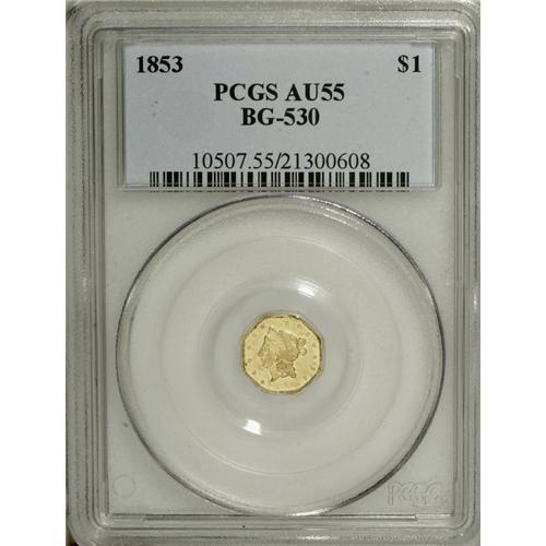 1853 $1 Liberty Octagonal 1 Dollar, BG-530, R.2, AU55