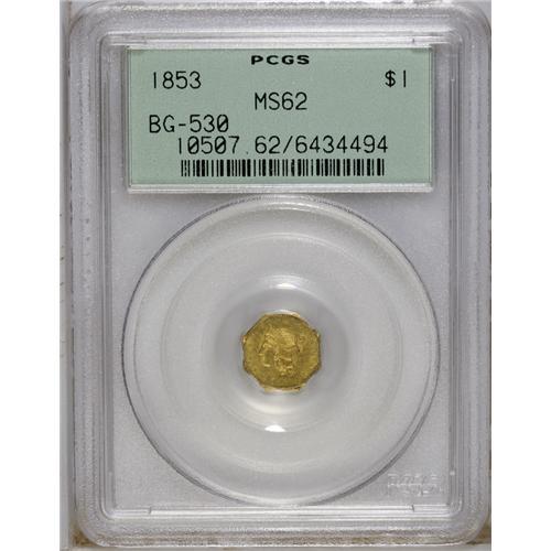 1853 $1 Liberty Octagonal 1 Dollar, BG-530, R.2, MS62