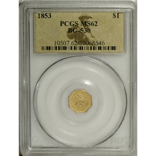 1853 $1 Liberty Octagonal 1 Dollar, BG-530, R.2, MS62