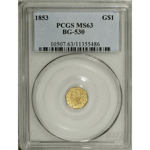 1853 $1 Liberty Octagonal 1 Dollar, BG-530, R.2, MS63