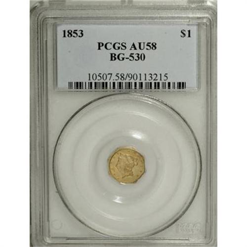 1853 $1 Liberty Octagonal 1 Dollar, BG-530, R.2,