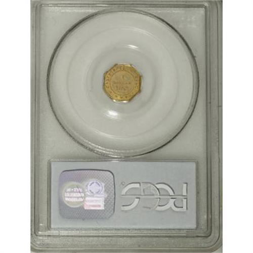 <B>1853 $1 Liberty Octagonal 1 Dollar, BG-530, R.2, AU58 PCGS.</B></I> A boldly struck example with smooth green-gold fields and a hair-thin vertical mark on the portrait. The reverse is slightly concave, as made.<BR><BR><b>Shipping:</b> Coins & Currency (<a target="_blank" href="http://www.heritageauctions.com/common/shipping.php">view shipping information</a>)