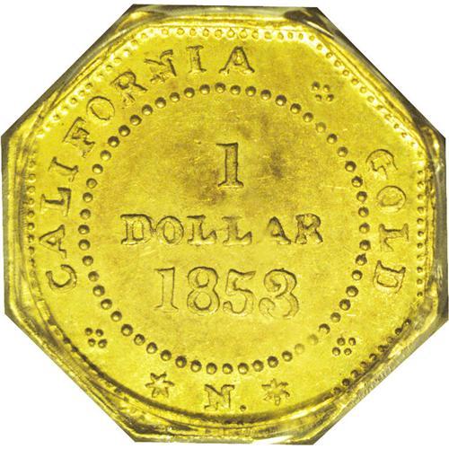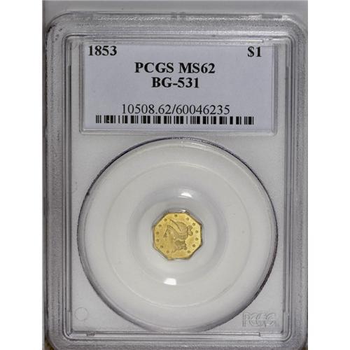 1853 $1 Liberty Octagonal 1 Dollar, BG-531, R.4, MS62 1853[$1] Liberty Octagonal 1 Dollar, BG-531, R