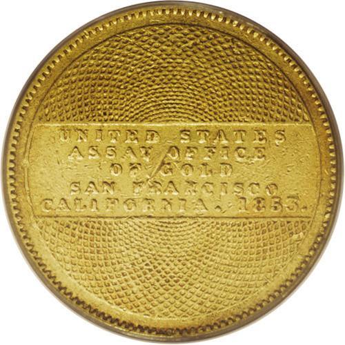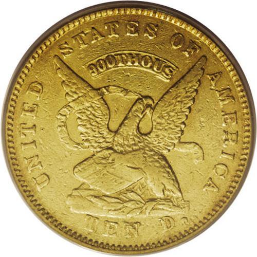 1853 $10 Assay Office Ten Dollar, 900 Thous. AU50 PCGS