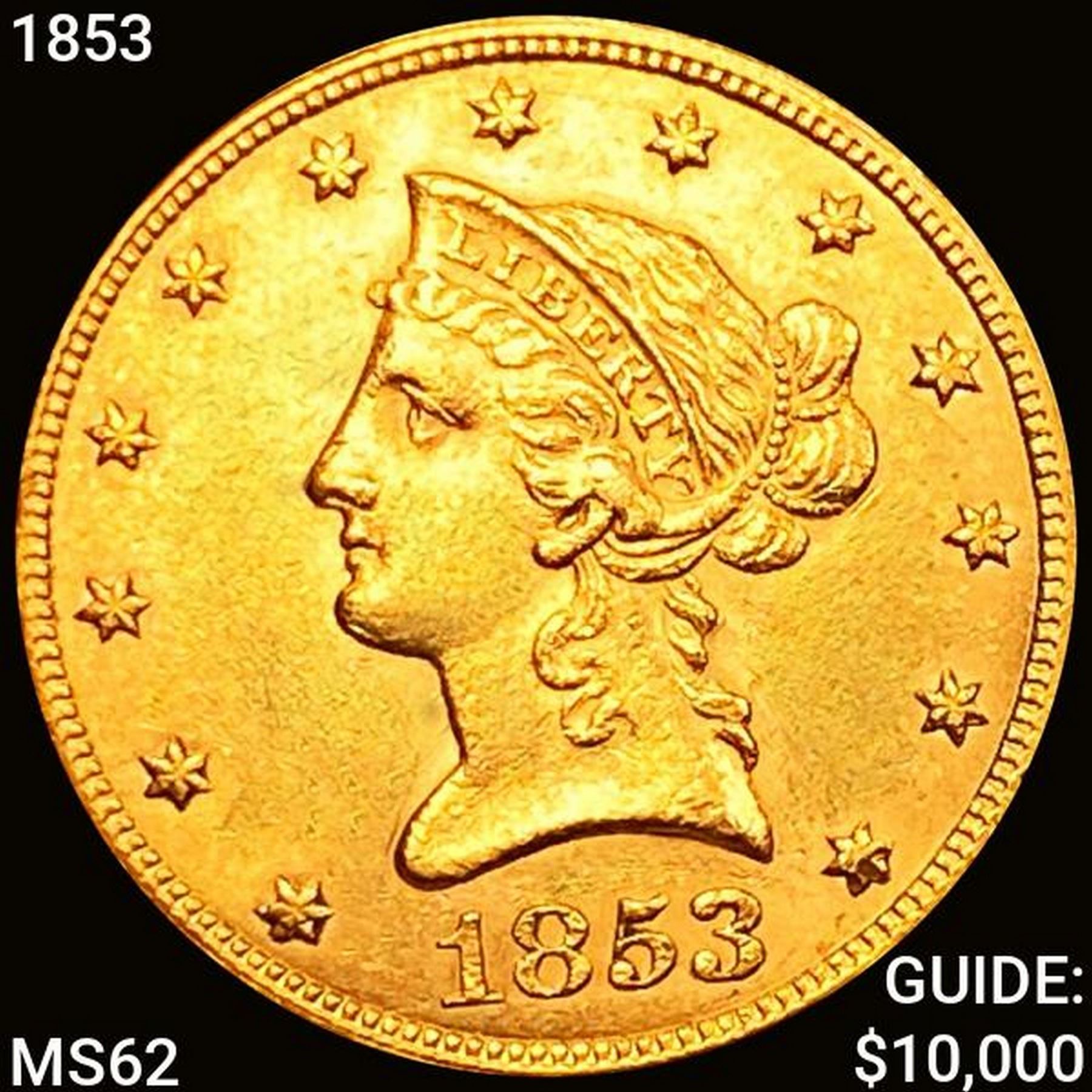 1853 $10 Gold Eagle CLOSELY UNCIRCULATED