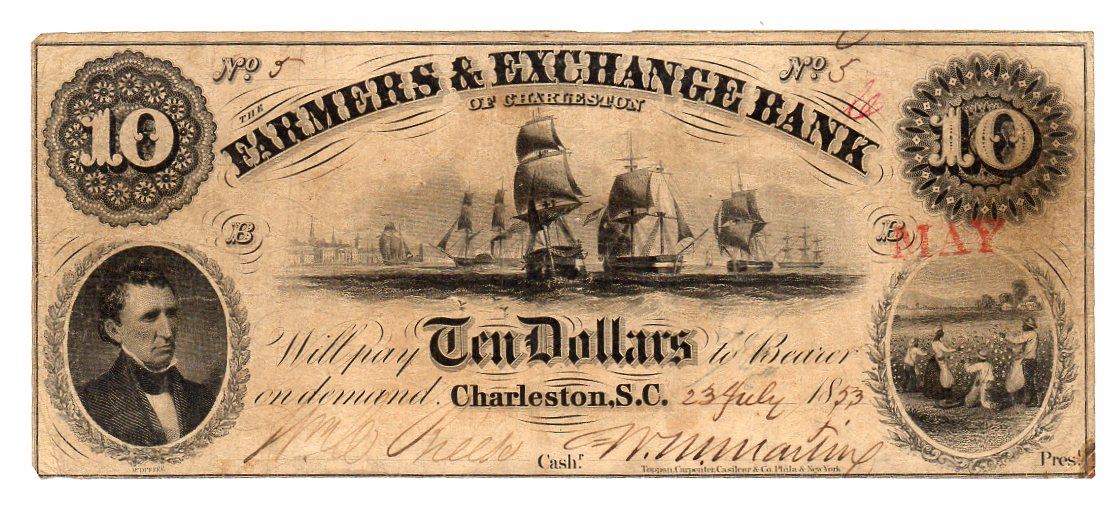 One 1853 $10 The Farmers & Exchange Bank Obsolete Note.
