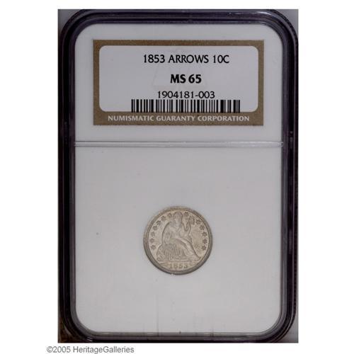 1853 10C Arrows MS65 NGC. Gray colored on both sides w 1853[10C] Arrows MS65 NGC.