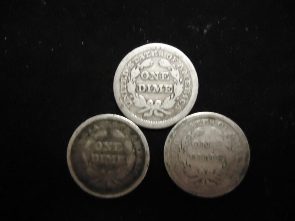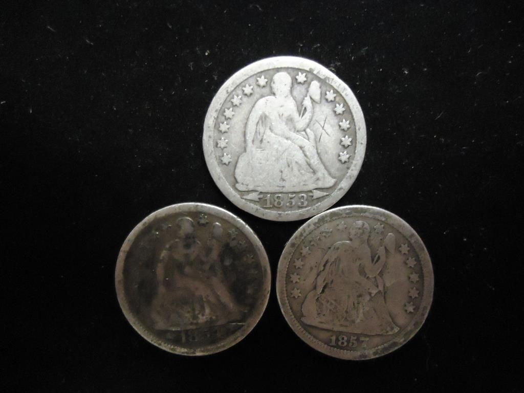 1853,1854 & 57 SEATED LIBERTY DIMES