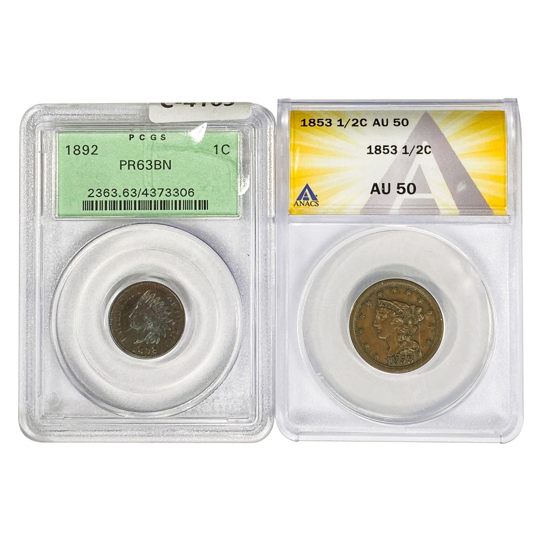 1853&1892 [2] Varied Cents PCGS/ANACS AU/PR