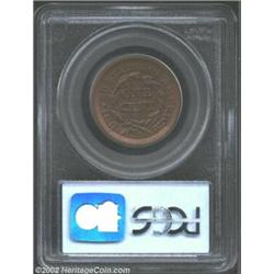 1853 1C Cent--Mis-Aligned Obverse Die--MS64 Red and Brown PCGS. At first glance, the obverse appears to be struck off center about 5% at 9 o'clock. The reverse, however, has a normal appearance. The borders have ample faded red color, while light lilac patina fills the centers. Well struck except for the left side stars and star 13. The surfaces are lovingly preserved. Important notice: We expect to be auctioning lots at the rate of 200-250 per hour. Sometimes eBay Premier live bid software cannot keep up with that pace, so we strongly recommend that you place a realistic proxy bid now as insurance to avoid disappointment. Also please note that all Heritage/CAA lots purchased through eBay Premier carry a 20% Buyer's Premium. Please make sure you read the Terms and Conditions.