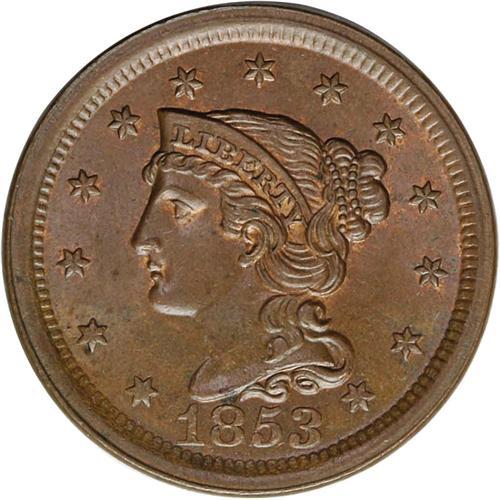 1853 1C MS64 Brown NGC. N-33, R.2. Brown with 5-10% mi 1853[1C] N-33, R.2. MS64 Brown NGC. MS60 EAC.