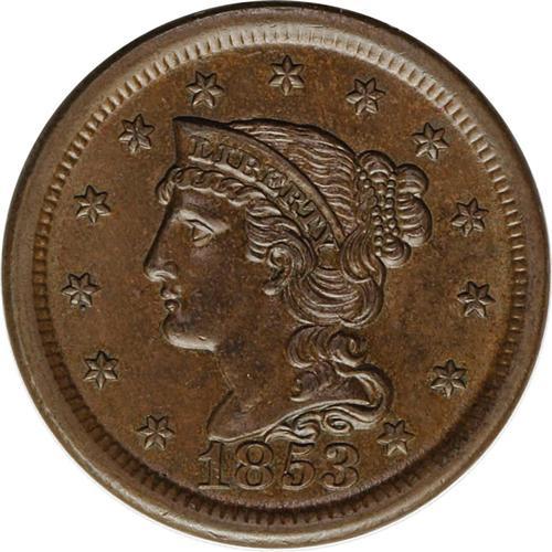 1853 1C MS64 Brown NGC. N-9, Low R.2. Brown with smoot 1853[1C] N-9, Low R.2. MS64 Brown NGC. MS60 E